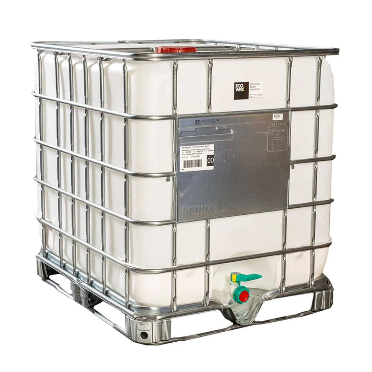 Contenedor IBC Estructural (1000 Lts): Depósito blanco reforzado, listo para ser montado sobre trailers o camionetas.