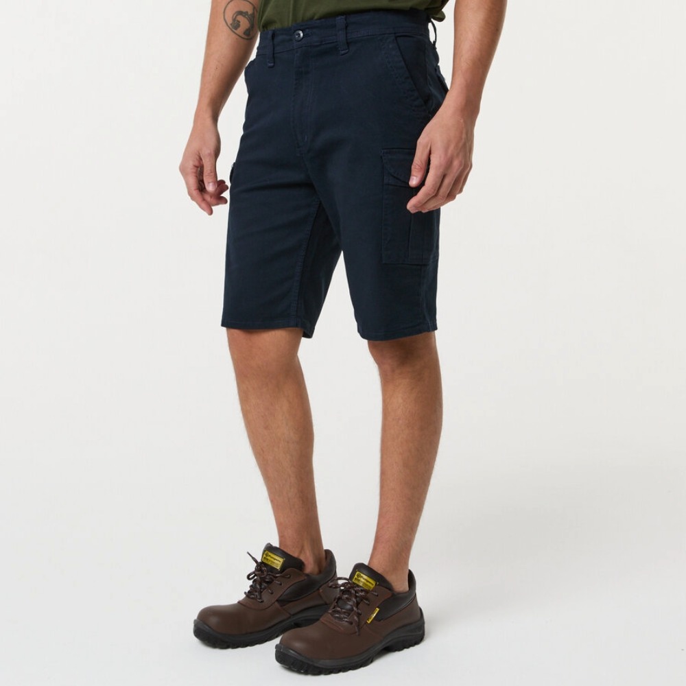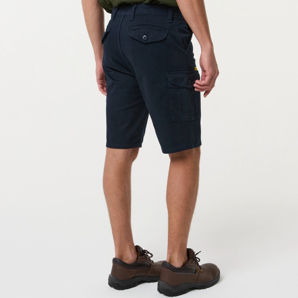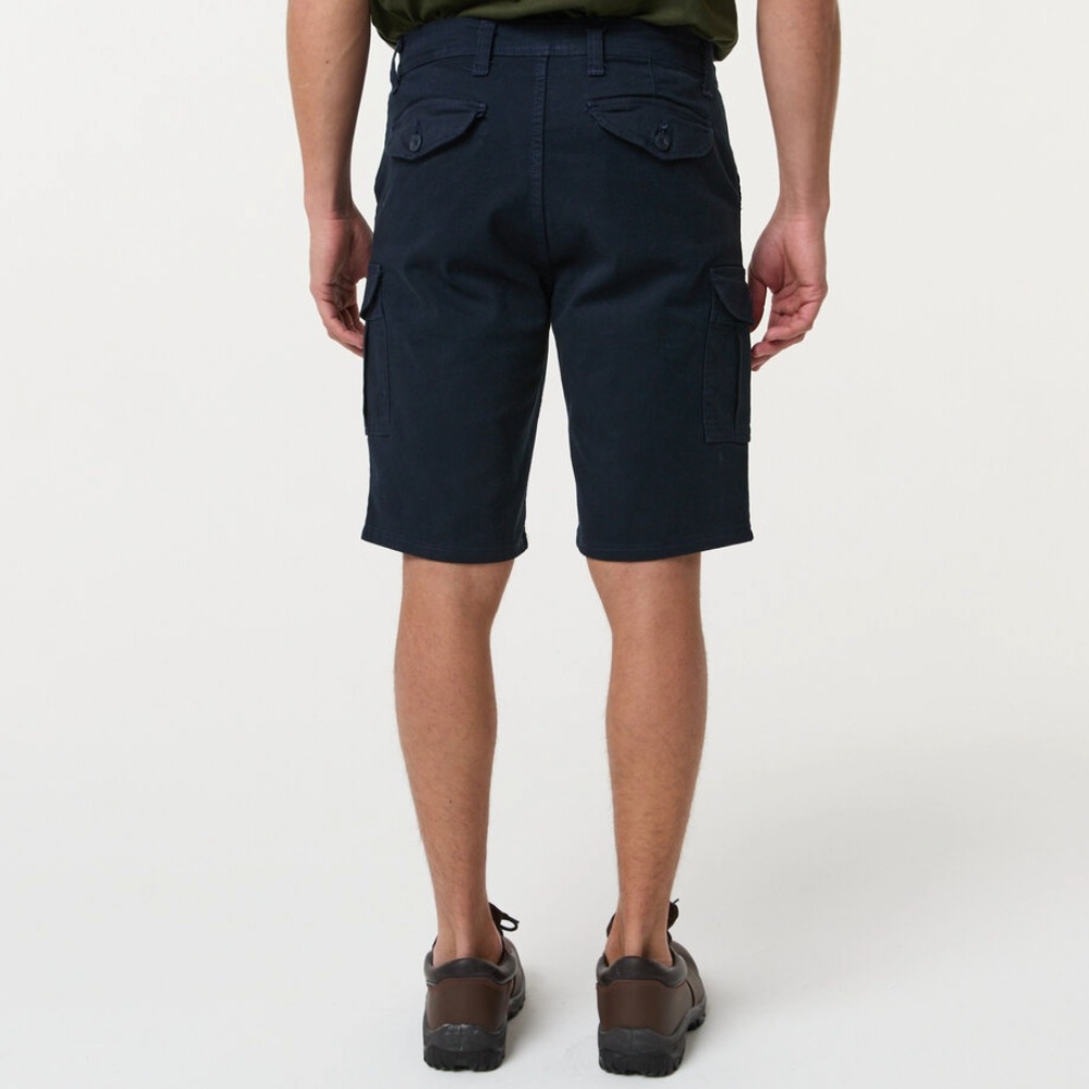 Bermuda Cargo elastizada, confeccionada en gabardina 8 oz con lavado gastado.