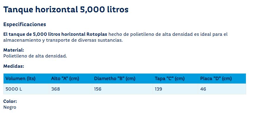 Tanque Horizontal 5000 Litros – Rotoplas – Negro – Rompeolas, Químicos y Transporte